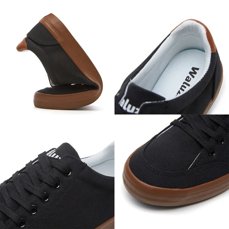 All Black Basic Custom Brand Casual Lace – up Rubber Sneakers With Low Top Design Hiking Men’s Walking Shoes